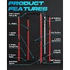 1600 lbs weight capacity. 18 adjustable height settings. Includes pull-up bar, dip bars, bench press station, landmine, lat pulldown system, row handle, short row bar, and weight plate storage. Constructed from reinforced steel tubing. Please refer to the manual or product listing for detailed dimensions and assembly instructions.