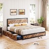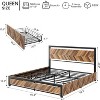 Acekool Queen Platform Bed Frame with Rustic Wood Headboard, 4 Storage Drawers & Metal Frame