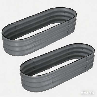 Acekool 2-Piece Oval Planter Box Set - 4.5'x2'x1.5' Galvanized Metal Garden Beds (White/Stone Gray)