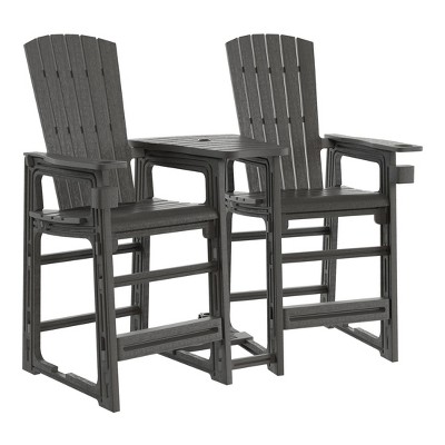 Product Name: Acekool Recycled Poly Barstool Adirondack Set - 2 Weatherproof Chairs with Connecting Tray,Gray