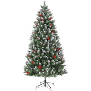 Acekool Snow Flocked Artificial Tree, Full Branch Tips, Red Berries, Hinged Branches, Easy Setup, Realistic Winter Holiday Decor