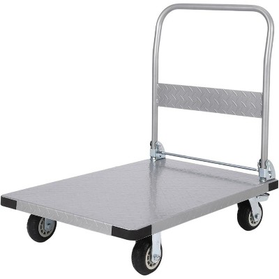 Acekool Steel Flat Dolly Cart, L-Shape Platform Truck with Removable Handle, Locking Nylon Casters, Industrial Moving Cart, 880lb