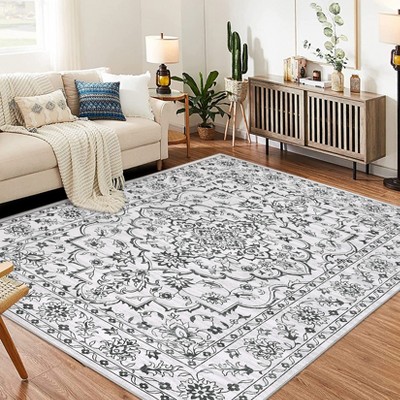 Acekool Striped Area Rug Modern Washable Foldable Non-Slip Soft Plush for Living Room Bedroom Dining Room, Gray 9x12ft