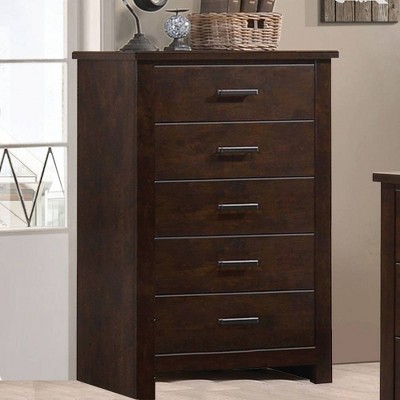 Acekool Tall Rattan 5-Drawer Dresser – Space-Saving Vertical Storage with Metal Accents, Natural Oak