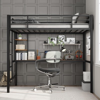 - 【No Box Spring Needed – Strong Metal Support】This twin loft bed comes with sturdy metal slats that offer reliable mattress support and eliminate the need for a box spring. The robust frame is designed to keep the mattress in place and provide a restful night's sleep, all while keeping the design streamlined. With this efficient support system, you enjoy a more breathable and long-lasting sleep experience.