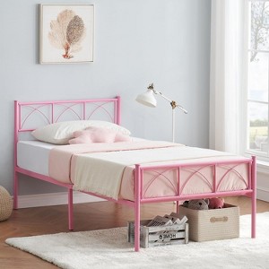 Acekool Twin Metal Bed - Pink with Headboard & Storage