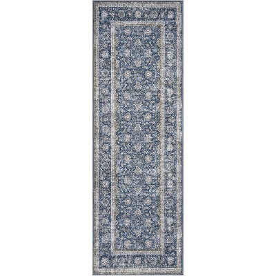 Acekool Washable Area Rug 5x7, Soft Vintage Boho Low Pile Non Slip Indoor Carpet for Living Room Bedroom Dining, Easy Care, Blue