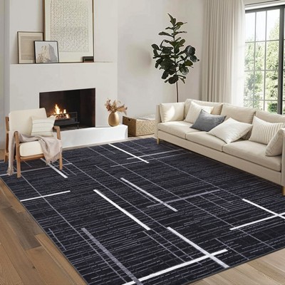 Acekool Washable Boho Geometric Area Rug, Non-Slip Foldable Low Pile Accent Carpet for Living Room Bedroom, Soft