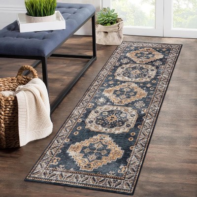 Acekool 2x6 Washable Floral Area Rug – Soft Low Pile, Non-Slip, Foldable Vintage Design for Living Room & Bedroom, Black