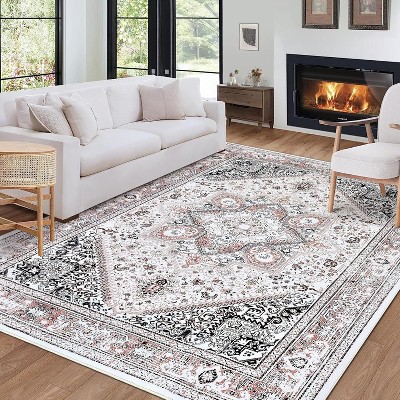 Acekool Washable Oriental Area Rug, Non-Slip Ultra Soft Stain Resistant Carpet for Living Room, 8x10 Blue