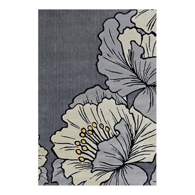 Acekool Washable Runner Rug 8x10 Modern Bordered Floral Print, Non-Slip Low Pile Soft Bedside Rug for Hallway, Laundry, Bedroom,Gray