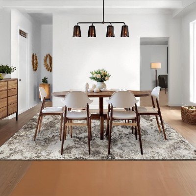 Acekool Washable Tiger Area Rug, Non-Slip Low Pile Botanical Animal Print Carpet for Living Room Bedroom Nursery Office, Soft & Foldable, 5x7 Brown