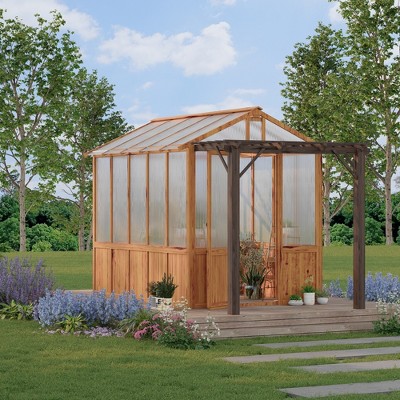 Acekool Wooden Greenhouse for Outdoor, Heavy Duty Walk-in Green House Kit with 6mm Polycarbonate, Lockable Door & Ventilated Window