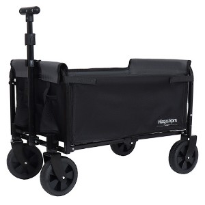 ACEPANO 220-Pound Capacity Multi-Functional Foldable Camping Wagon Cart with Bench Seat, Storage Compartments & Pet Leash-Black