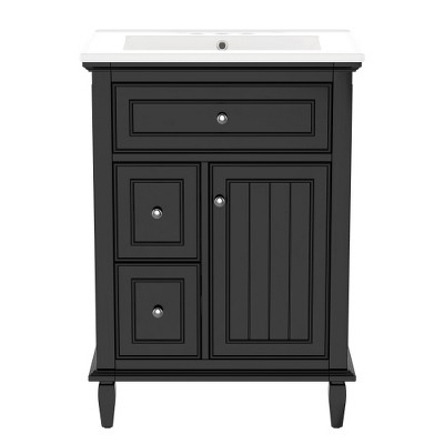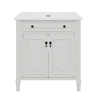 This vintage-inspired bathroom vanity features an antique gray finish that exudes sophistication and character. Expertly crafted paneled doors paired with retro-style handles add a touch of nostalgic elegance, making this vanity a perfect fit for traditional, rustic, or eclectic bathroom styles. Whether you're undertaking a full renovation or seeking an elegant upgrade, this vanity combines style, durability, and functionality to deliver a stunning result.