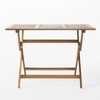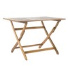 - Crafted from weather-resistant, waterproof acacia wood, its X-shaped base and slatted tabletop prevent water pooling after heavy rain.
