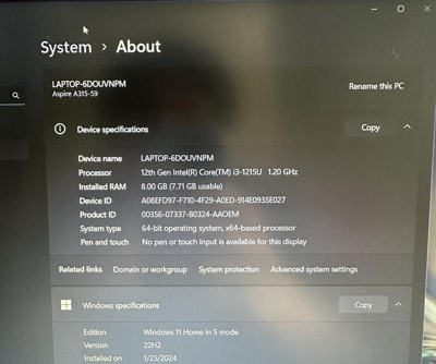 Refurbished Acer Aspire 3 - 15.6" Laptop Intel Core i3-1215U 1.20GHz 8GB RAM 256GB SSD W11H - Manufacturer Refurbished