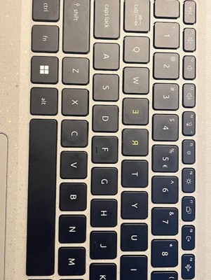 The letters "R" and "E" on the keyboard are backwards (see photo)