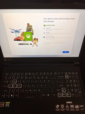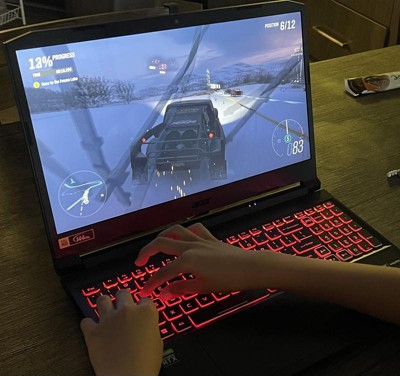 [This review was collected as part of a promotion.] Review of Acer Nitro 5 AN515-45-R6XD Gaming Laptop Specifications Display: 15.6" 144Hz FHD CPU: AMD Ryzen 5 5600H GPU: Nvidia GeForce RTX 3060 Memory: 8GB DDR4 RAM Storage: 512GB NVMe SSD Operating System: Windows 11 (after upgrade) Out of the Box Experience The laptop arrived packed in extra thick foam padding, with an interior cloth bag. The unit was in mint new condition. There was a second box inside the main box that contained the power supply. The main box also included a brief owners guide, and some gaming stickers. Set up only had one hiccup - the power light did not appear when the power plug was first plugged in, and only worked after numerous attempts at reconnecting. In later testing, the power light also did not work until the power plug was disconnected and reconnected a couple of times. The laptop was able to fully charge and the battery showed 100% after we left it charging overnight. The battery life indicator said the charge was good for about three hours, but the display wasn't quite as bright on battery, so we kept the charger plugged in during gameplay. After booting up the first time, we patiently waited for all of the Windows updates that were waiting, to make sure all of the security updates were in place before installing any games. There was also a free Windows 11 upgrade, which we downloaded overnight. The keyboard has some nice color accents to show important keys for gamers (WASD) and the backlighting looks good at night. Gaming Experience We installed Steam and then downloaded a popular game called "Forza 4", which went quickly with the high-speed Wi-Fi, at about 60MB per second. Starting Forza 4, there was a warning about not meeting the minimum requirements, but we pressed on ahead and ran the "Benchmark Mode", which showed that the Nvidia RTX 3060 was powerful enough to show good-looking graphics at about 36 frames per second, which is fine for our young gamer to enjoy this game. The audio was loud enough so that external speakers are not necessary - much better sound than we get from games on a tablet or a phone. The 15.6" display provides a more immersive experience than playing on a tablet or a phone, which our young gamer is thoroughly enjoying as we write this review. Summary Overall we are quite pleased with the Acer Nitro 5 gaming laptop. We are having lots of fun downloading games and enjoying the "PC Gamer" experience. Recommended.