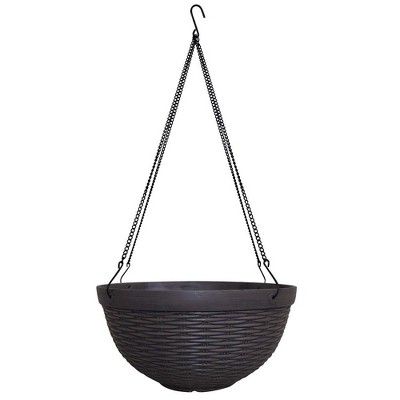 - WEATHER RESISTANT AND DURABLE: Burnt sienna planting pot made from galvanized steel, finished in a warm rustic patina, and hanger made of wrought iron with black powder coated finish