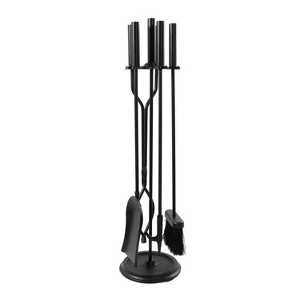 - SET OF 4 FIREPLACE TOOLS: The set includes shovel, tongs, steel-tipped poker, Tampico fiber brush, and a round stand