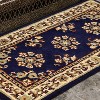 These hearth rugs are inspired by traditional Persian designs. They have five borders and floral medallions in the center. We offer them in rectangles and half rounds, in blue, beige and burgundy. Hearth rugs protect your floor and will add beauty and warmth to your fireplace. They can also be used as door mats or as occasional rugs throughout your house. (For indoor use only). All our hearth rugs are woven from the highest quality 100-percent virgin wool and dyed in rich saturated colors. They are fire resistant and meet federal requirements for surface flammability of small carpets (Part 1631 - FF2-70). Warning: your pets will probably make a bee-line for these rugs so they can bask in the warmth of the fire!