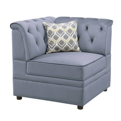 A striking addition to your living space that combines opulent comfort with versatile design. Crafted with meticulous attention to detail and premium materials, this sectional wedge offers a perfect blend of elegance and functionality. The Jaszira Modular Sectional Wedge features a contemporary silhouette with a wide, curved design, providing ample seating space and inviting relaxation. Upholstered in sumptuous blue velvet, this wedge exudes sophistication and adds a touch of glamour to any room. Designed for ultimate comfort, this sectional wedge is generously padded with high-density foam cushions, ensuring a plush and supportive seating experience. The velvety texture of the upholstery adds a luxurious feel, inviting you to sink in and unwind in style.