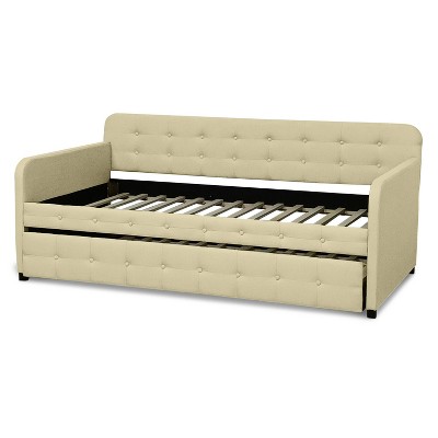 A contemporary masterpiece meticulously crafted to enhance any décor with its sleek design and impeccable attention to detail. Its clean lines and graceful silhouette make it a versatile addition to your living area, guest room, or home office, seamlessly blending in with any interior style. What truly distinguishes this daybed is its innovative trundle feature. The hidden pull-out bed underneath offers convenient flexibility, effortlessly accommodating overnight guests or providing extra sleeping space for family and friends, all while maintaining the bed's chic appearance and comfort. Crafted from top-quality materials and built to last, the Adkins Daybed with Trundle guarantees both durability and comfort. Elevate your home's ambiance with the opulent Beige Velvet upholstery, infusing a touch of refinement and sophistication into any space.