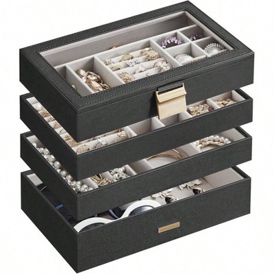 Acrylic makeup organizer, 7 - drawer vanity storage with small/wide compartments, black