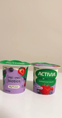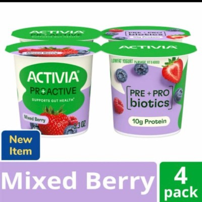 - DELICIOUS MIXED BERRY FLAVOR: Pack of four 5.3 oz snack cups of Activia Proactive Mixed Berry Prebiotic and Probiotic Lowfat Yogurt
