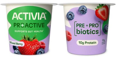 - PREBIOTICS AND PROBIOTICS: Activia Proactive Mixed Berry yogurt contains prebiotics to feed the good bacteria in your gut and billions of live and active probiotics in every cup
