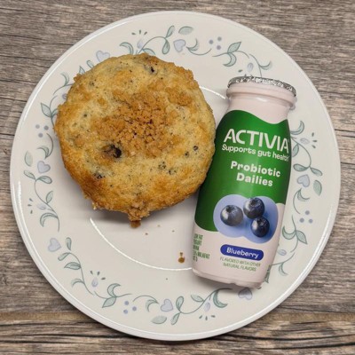 [This review was collected as part of a promotion.] My mornings are blue… berry! Activia Dailies are so easy to integrate into breakfast or any time of day. I pair my blue berry Activia Dailies with blueberry muffins. Just shake and sip for an easy gut healthy treat.