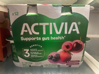 - DELICIOUSLY GOOD, BACKED BY SCIENCE: Twelve 4 oz snack cups of Activia Black Cherry and Mixed Berry Probiotic Low Fat Yogurt