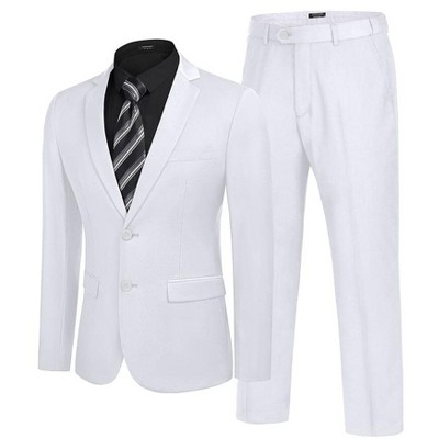The Adam Baker men's slim fit shawl collar tuxedo separates offer a refined alternative to traditional suits, giving you the flexibility to choose jacket and pant sizes individually for a more precise fit. The sleek shawl collar and one-button closure lend timeless elegance, while the slim cut delivers a modern silhouette suitable for formal events, business occasions, and evening celebrations. Designed with both style and function in mind, the pants feature an open bottom hem so you can tailor the length to your exact preference. This set is a versatile addition to any formal wardrobe, combining sharp tailoring with day-to-night comfort.