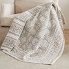 - THE ADARE TAUPE DESIGN: One of our most popular throws, Adare is inspired by distinctive fashionable wall coverings, with beautiful flowers in bloom and vines with a distinctive border all around and a charming reverse pattern of striped border floral vine design. A bound border provides contrast and texture to complete the look.