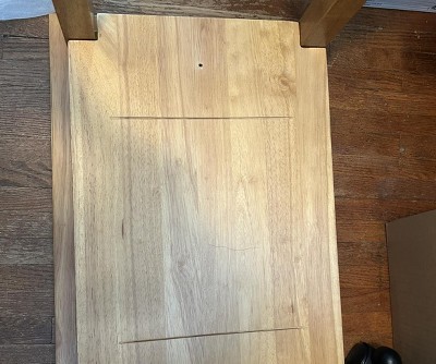Real wood which is nice but the holes weren't drilled where they were supposed to be and it says not to use a drill. If I hadn't gotten it on sale I would have returned it. But to get it to a target store or buy a box to mail it back isn't worth the effort.