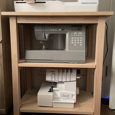 I bought this cart to use in my hobby/sewing room. My space is really small and I needed a way to store my sewing machine, embroidery machine, and my serger - this cart was perfect. The design is simple, compact, solid, and clean. It was easy to put together, there were no pilot holes for the shelf screws, which surprised me, but with a little leverage I was able to use a Phillips screwdriver to successfully get them installed - it did require a little strength. I’m thinking I can add some hinges and sides if I wanted to expand the top for a sewing surface since two of the wheels lock. Happy with my purchase.