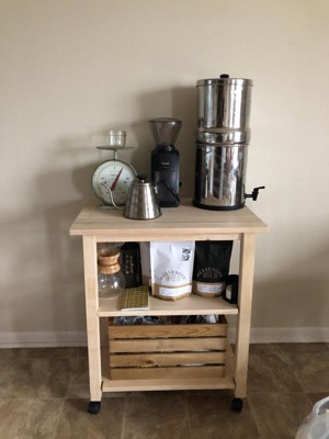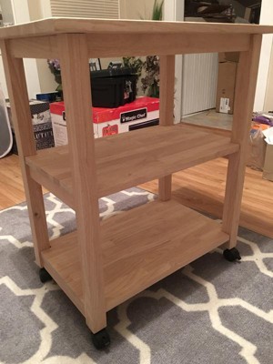 I had been looking for a cart that would fit in the space I had. I ran out of counter space and wanted something nice to use at a coffee cart/island. This cart was the exact size I needed, I put it together in about 25 minutes, and it’s solid heavy wood. It looks great as is unstained, but I might eventually darken it. I will probably change out the wheels for nicer looking ones. Other than that though, I love it!