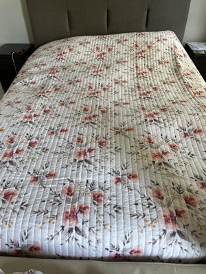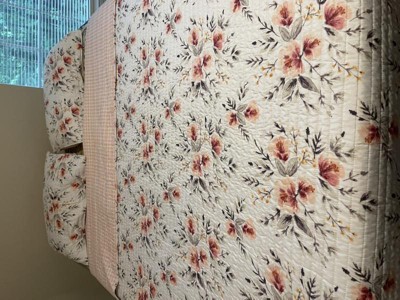 [This review was collected as part of a promotion.] My wife is super happy with this quilt. (This is reviewed by her and she is very picky about quilt and bedsheets ). This floral pattern is so pretty and its so well complimented by the soft pink checkered pattern on the other side. It's lovely for the spring and summer time when you're ready for a lighter bedspread. Absolutely in love with this set, it is elegant and looks luxurious. I'm definitely a fan of this company now.