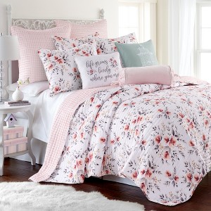 - ADELINE QUILT SET: With a sweet floral design , this quilt set is part of the Levtex Home Adeline collection. Used by itself, as a layering piece or as a bedspread, the quilt is extremely versatile. It is the perfect set with which to decorate your kid's room.