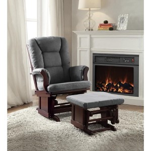 Adeliza Gray Microfiber & Cherry Finish Glider Chair with Ottoman