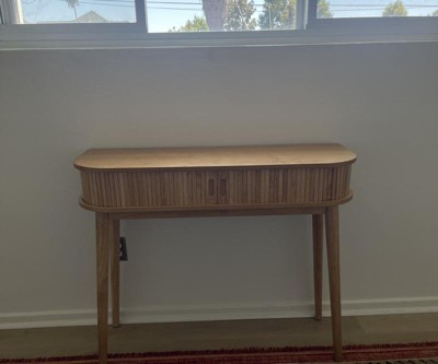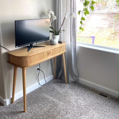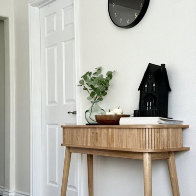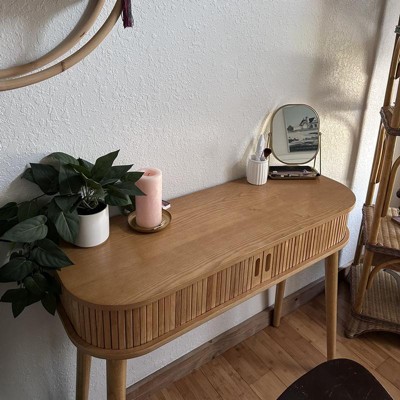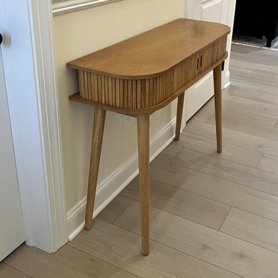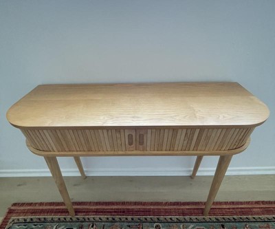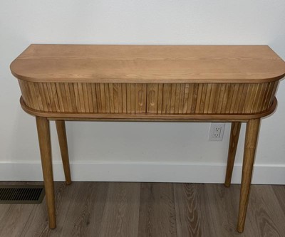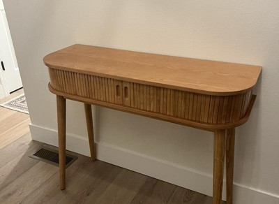 Adelpha Console Table with Sliding Doors Natural - Threshold™: Rubberwood Frame, Ash Veneer, Entryway Storage