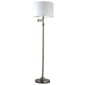 Adesso Aaron Swing Arm Floor Lamp Pewter: Linen Shade, Metal Body, UL Listed, 57.44" Height