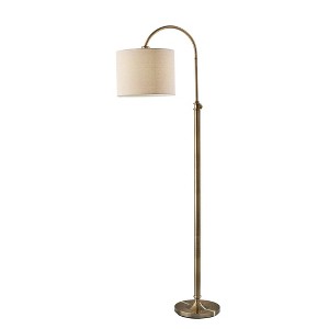 Adesso Barton Task Floor Lamp Antique Brass: Adjustable Height, Linen Shade, ETL Listed, Metal Body