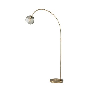 Adesso Camden Arc Lamp Antique Brass: Smoked Glass Globe, Mid-Century Modern Design, ETL Listed