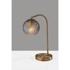 With a blend of contemporary and mid-century modern design elements, the Camden desk lamp imbues any space with warmth and light. A round base with an antique brass finish supports a matching gently arcing stem. Suspended from the stem is a 6.5" diameter globe shade crafted of smoked glass with a delicate swirl pattern. The glass leaves the 40W bulb visible, making a vintage Edison bulb (not included) a striking choice. For added versatility, the base of the lamp shade features an articulation point, allowing you to redirect the shade for a variety of looks and lighting options. Complete your decor with the coordinating Camden flush mount ceiling light, pendant light, wall lamp, floor lamp, and arc lamp.
