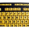 - Fluorescent 4X Print Keys: The large 4X size black print on fluorescent yellow keys provide excellent contrast and stronger appeal over traditional keyboards that have small, hard-to-read white letters on black keys.