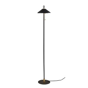 In classic form, the Kaden floor lamp's mixed metal finish and elegant design adds a polished accent to your space. Featuring a slim round base, thin pole and tapered conical shade, the dual-metal design is crafted of black metal and beautifully contrasting brass accents. Two 5W replaceable LED bulbs are included and illuminate your space with 450 lumens of warm light. A pull-chain switch in brass finish easily turns the light on or off, while the lamp is powered by a black fabric-covered cord. The Kaden floor lamp is also available with a brass finish and black metal accents. Complete your decor with the coordinating Kaden table lamp.