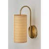 Elevate your home's lighting with the 5190-21 Mendoza Wall Lamp, featuring a stunning brass finish that exudes timeless elegance. This wall lamp is designed to make a statement with its tall cylinder-shaped natural woven paper shade, which casts a warm and inviting glow. The arched arm adds a touch of sophistication to your space. Whether used as an accent piece or as part of your overall lighting scheme, the Mendoza Wall Lamp brings both style and functionality to your home.