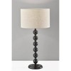 The Orchard table lamp illuminates your space with elegant symmetry and an eye-catching design. Constructed of black wood, a round base supports a matching tall stem designed as a series of stacked balls. The monochrome black of the lamp's body is complemented by the cream-colored linen drum shade. Easily operated by a 3-way rotary socket switch, you can adjust the brightness from a 100W bulb between low, medium, and high to suit your lighting needs. To coordinate with rustic, farmhouse, or coastal styling, this lamp is also available with a natural wood finish. Complete your decor with the Orchard floor lamp.